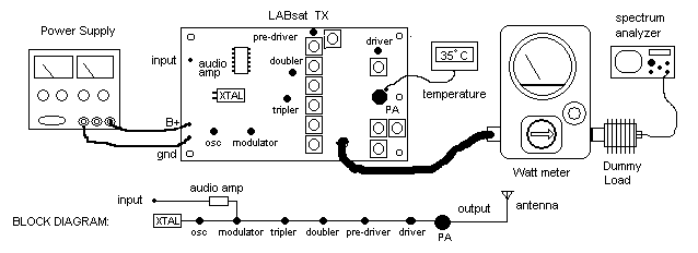 COMM SYSTEM: . The Telemetry, Command and Control system communicates at 1200 or 9600 baud using the standard AX.25 packet radio protocol that has flown on MIR, the Shuttle and ISS plus a dozen or more satellites in the Amateur Satellite Service (including 5 of our own). . In the Lab we typically use the $88 Alinco's for all packet commanding and telemetry, but use discrete TX and RX modules in the actual TX and RX portion of the labs. . Draft Tech Manual only a draft beginning, but has not been updated since 2005 and most of the improvements since have not been added yet.