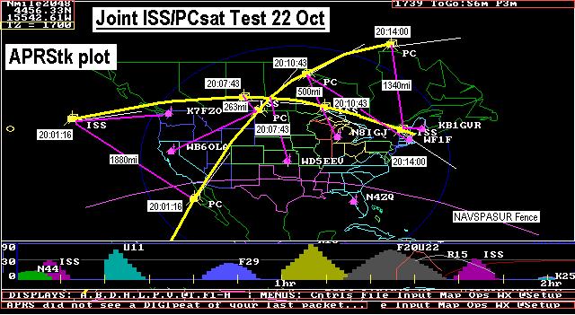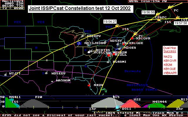 At 19:54:27 N4ZQ got the first dual hop packet through ISS and then PCsat. Then a minute