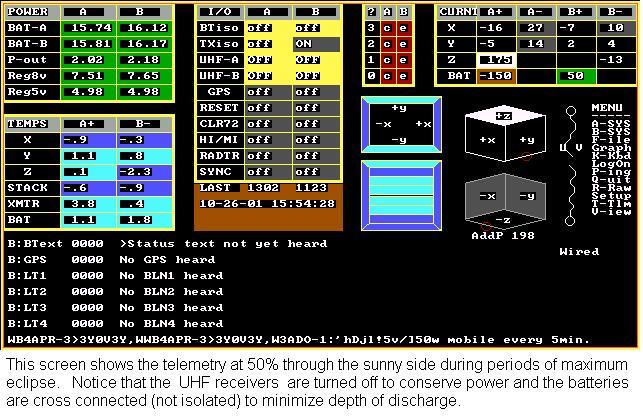 FALL 2003, OPERATING PERIOD: PCSAT-1 returned to full health from 13 Sept to 9 Oct 2003 in full Sun and supported 50+ users a day on the live downlink page!