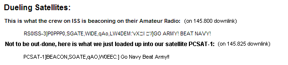 . . . . PCSAT2 secondary ISS Digipeater on 145.825 simplex (only if ARISS is off)