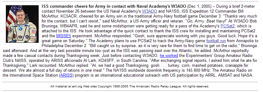 . . . . ARISS Packet System on 145.800 with uplink on 145.990