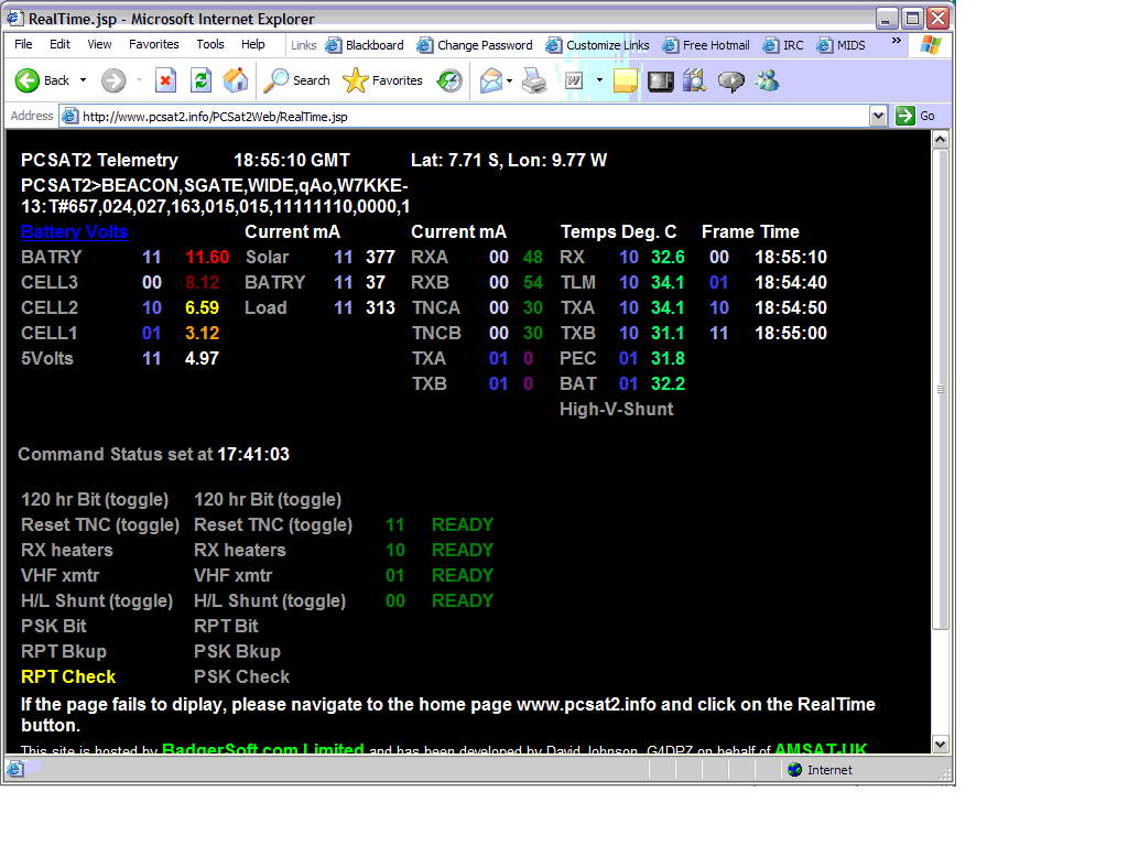 Routine Telemetry: Currently there are three live APRS interenet connected satellite downlink web pages provided by Steve Dimse K4HG: