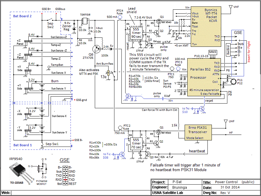 The 2014 Final Design: When the 2014 launch opportunity becamse available, and since all the original design students were long gone and the design had not been thoroughly vetted, the system was redesigned and simplilfied. Here are the final docs for the PSAT delivered in January 2015 and launched on 20 May.