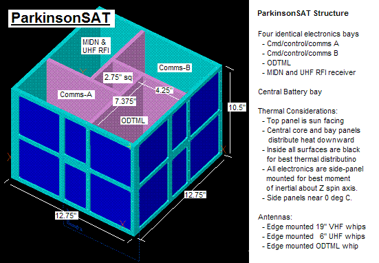 original 1 cubic foot ParkinsonSAT to fit inside the a 1.5 unit cubesat so that two Psats could be launched from the same P-Pod launcher. That