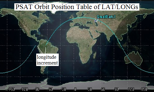 orbit is fixed and so PSAT can run a 95.16 minute Mean Anomoly clock synced to the orbit period and