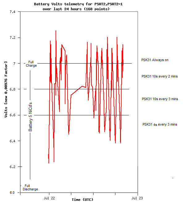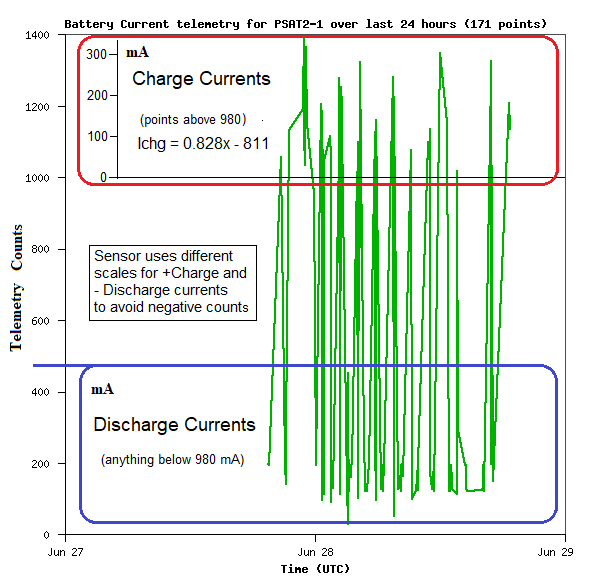 pcsat.findu.com web page. APRS packet is a secondary mission compared to DTMF and PSK31, so the digipeater may be turned off if power is low. But beacons, telemetry and Bulletins will always remain. The five Telemetry Equations (after the serial number) in standard APRS telemetry format are: