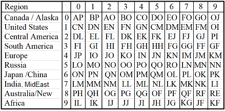 APRStt GRID MAP Encoding: The map table below encodes the 99 grids that have 99.99% of the