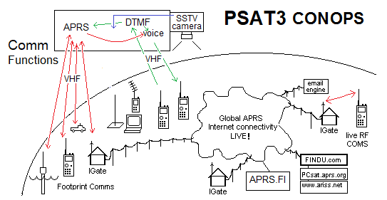 The unique features of PSAT3 are a subset of the previous APRS satellite CONOPS image diagram at right.