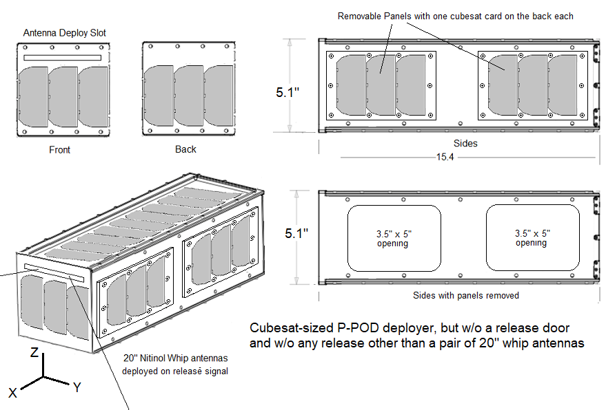 Structure: The structure is a PPOD like box with removable side panel inserts as shown here.
