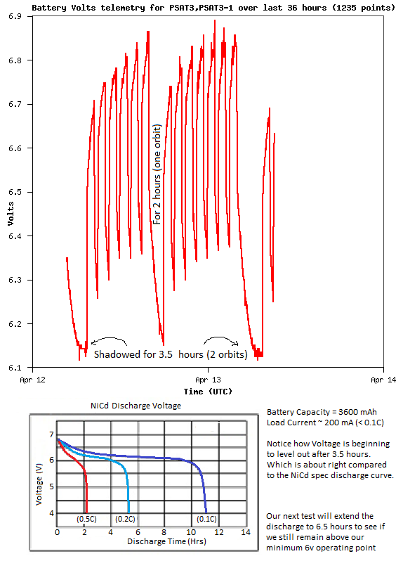 giving us about 2 Watts orbit average power. This is significanly reduced on this mission since the payload