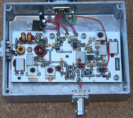 Hardware Receivers: Peter Martinez, G3PLX who invented PSK-31 has these AGC comments on how the HF receiver should maintain a high audio signal level to fully modulate the FM downlink transmitter. This does not work in linear systems, but should work well with FM and some deviation limiting. As far as receiver design, David Bowman, G0MRF of the Funcube team, offers a design he has prototyped in the past that has a 29MHz input (should be 28 MHz), a down converter to 10.7MHz, a filter to 7.5kHz bandwidth, an AGC system with 43dB range, a product detector to produce audio 0-7500Hz, and an audio low pass filter and buffer to give audio for then transmission by the FM xmtr. See his design and image on the right below.