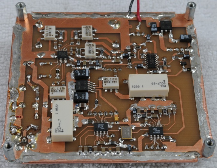 Similarly, Carl Lyster, WA4ADG offered the following prototype that he has flown (or will fly?) on a balloon payload. Here are the top and bottom photos (copper boards on left):