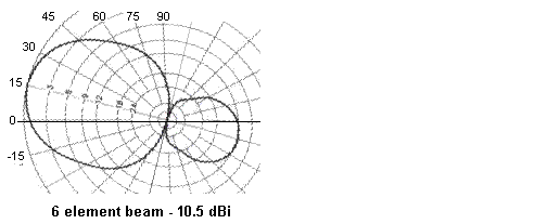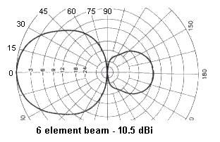 Now lest superimpose a typical 6 element beam antenna pattern pointed at the horizon on the range and angle plot above. The 6 element beam shows about 10.5 dBi gain towards distant satellites on the horizon which falls off by 3 dB at 30 degrees and by about 7 dB at 45 degrees. This antenna would perform EXCELLENTLY as both a terrestrial and satellite antenna, since almost 85% of all satellite pass times are within the 3 dB beamwidth of the antenna. And the other 15% above 30 degrees are easily 10 dB closer as shown above!