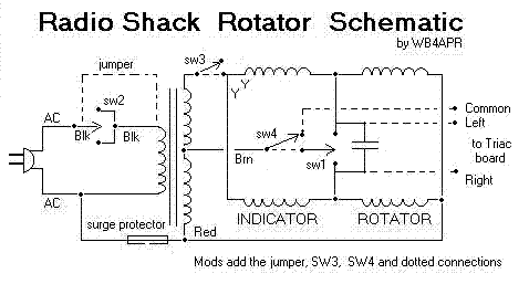APRS SUMMARY: This project is s simple 2 wire interface between the ubiquitous Radio Shack antenna rotator and 2 bits on a parallel port. APRStk.EXE (a version of APRSdos) supports it. I hope other APRS programs might consider it as well. Any rotator which operates on about 30 volts AC and rotates at 1.0 RPM should work as well. Read these instructions ENTIRELY before you start working on your rotator to be sure you understand which rotator you have and which wire is which…