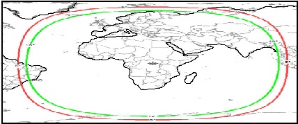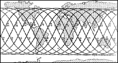 but does so every 110 minutes near the equator and once a day up to latitudes of 30 deg.