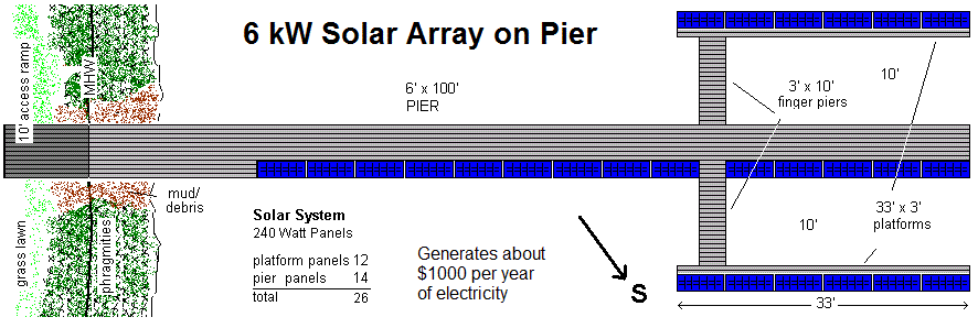 The example below was my original plan for a 6 kW array on a pier.