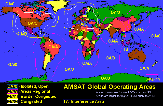 AMSAT OPERATING AREAS: . Users in different parts of the world have vastly different