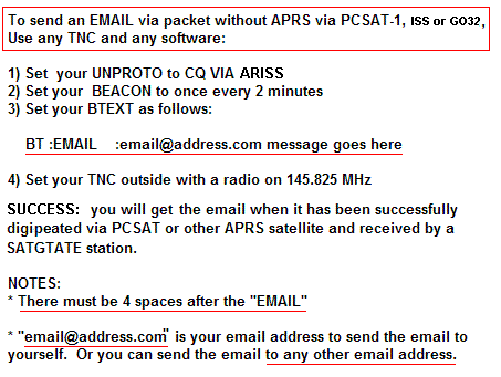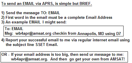 APRS EMAIL Procedures: . Since 1998 or so, APRS has had an interface into the global internet