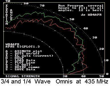 comparing the gain of a 1/4 wave whip with a 3/4 wave whip. This is live data