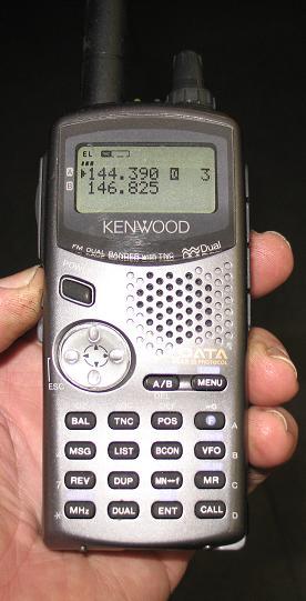 TH-D7(g) shown above, or the new Yaesu VX-8R (or the TM-D700 and 710 APRS mobile radios)