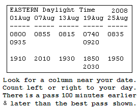 . All times shown are the center of the pass and rounded to the nearest 5 minutes,