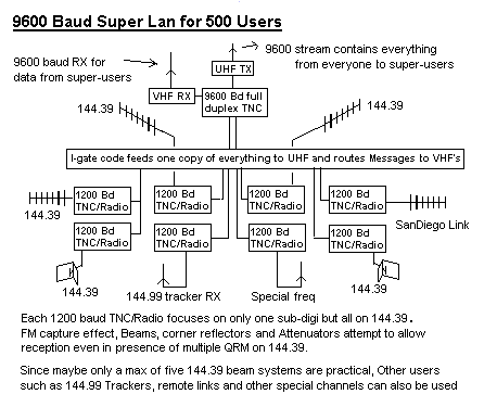 Of course, the mobile user with a LAPTOP in the car can monitor the 9600 baud channel if he is close enough to make up for all the disadvantages, and of course, if he stops the car, and points a beam at the Super-Site and uses a laptop, then he can quickly become a Super-User with no penalty.